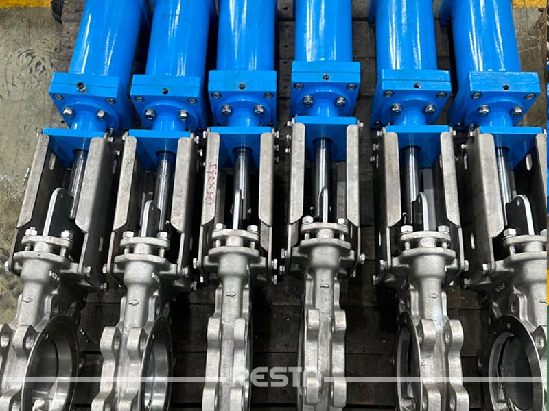 Hydraulic actuated knife gate valve are designed as metal to metal seat for high Temperature and rough medium , Ends connections in lug. Size ranges from 2”to 60” diameter, pressures in PN6, PN10, PN16, ANSI # Class 125 & Class 150. A broad body and trim materials are selected and fabricated to suit for various service conditions